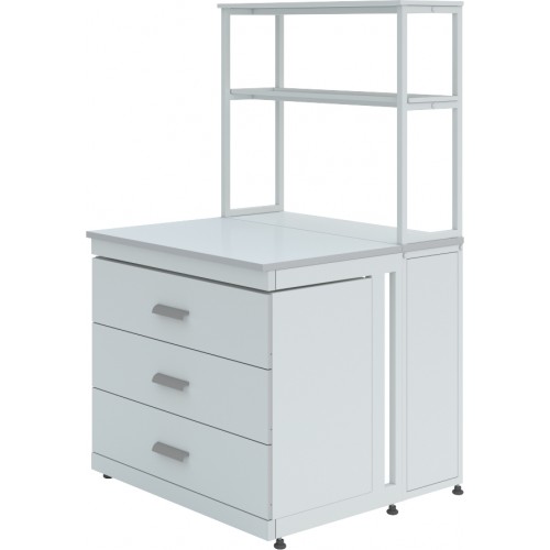 Стол лабораторный химический (с тех. приставкой) ЛК-900 СПТ дополнительно может комплектоваться различными тумбами, а также сливными раковинами, кранами для подвода воды или газа (сжатого воздуха), которые монтируются в технологическую приставку.